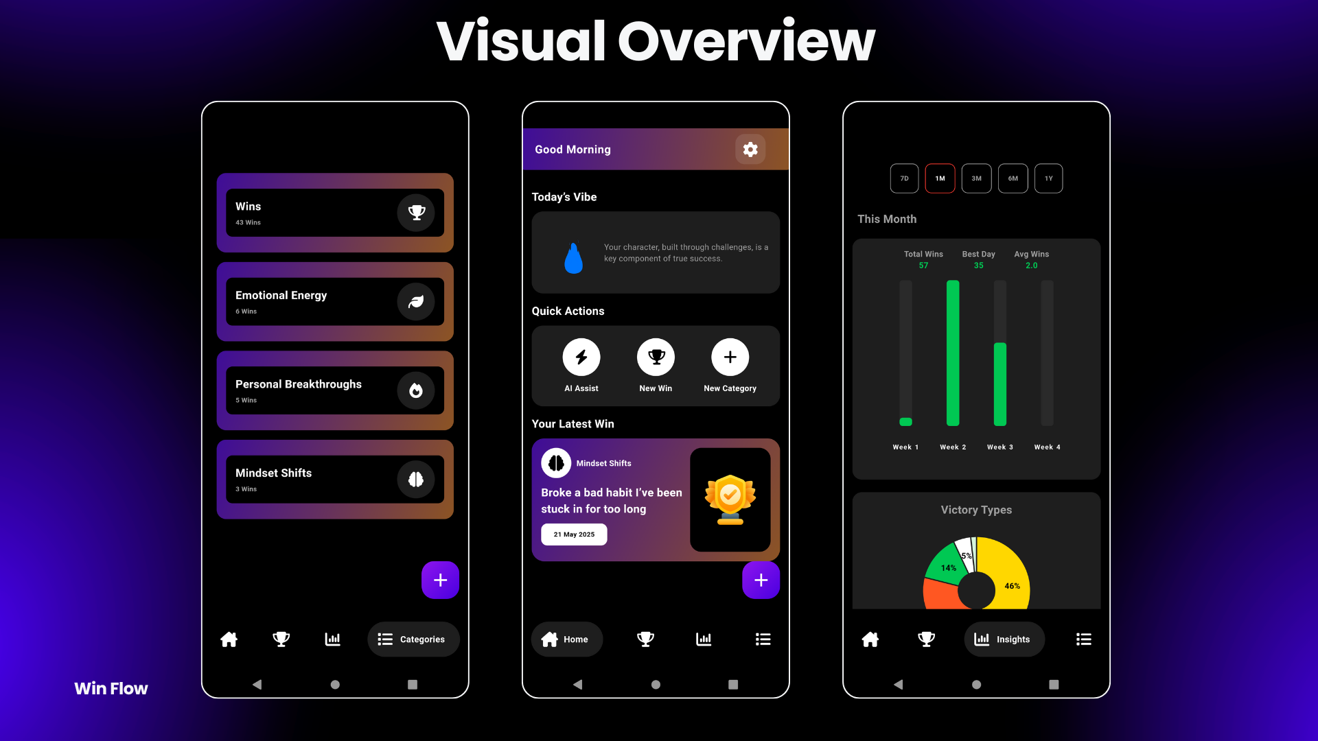 The app is simple on purpose. You just open it, choose a win type, and it gets saved to your flow. That’s it. No overthinking.